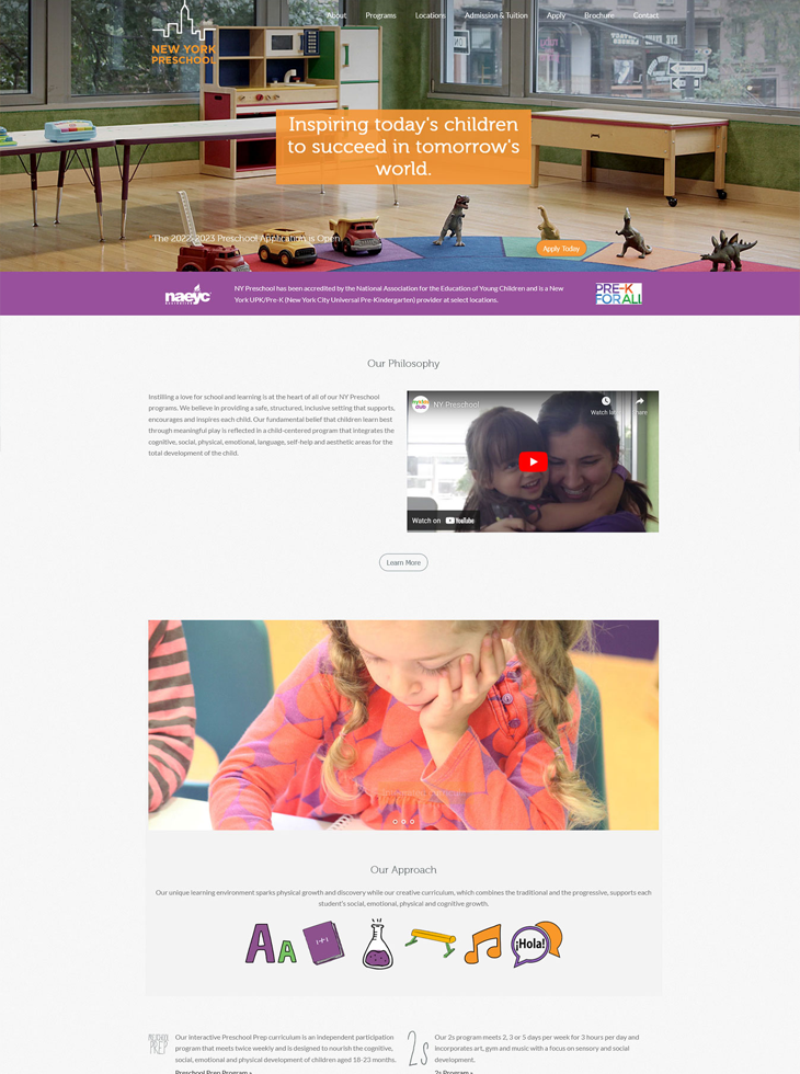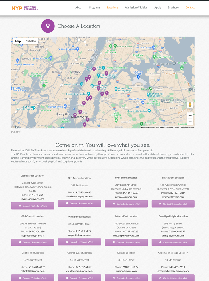 - Corporate Website Management and Optimization: Overseeing the maintenance of corporate website for New York’s premier children’s enrichment center, New York Preschool, comprising 17 locations.